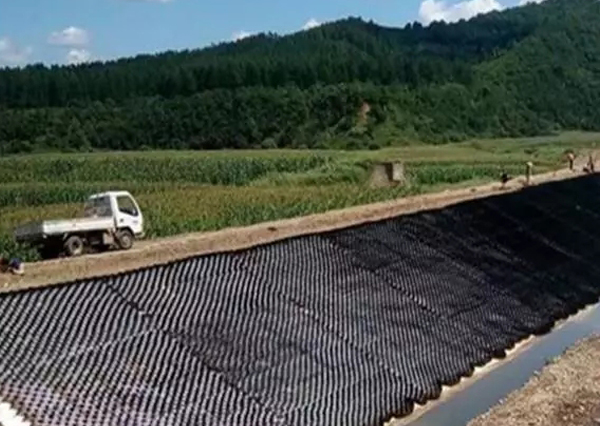 土工格室植草護坡:是指在展開并固定在坡面上的土工格室內(nèi)填充改良客土,然后在格室上掛三維植被網(wǎng),進行噴播施工的一種護坡技術(shù)。利用土工格室為草坪生長提供穩(wěn)定、良好的生存環(huán)境。