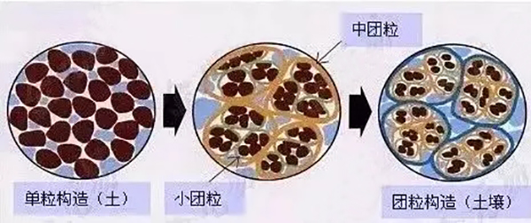 由于粘合劑具有很強(qiáng)的絮凝性,當(dāng)遇水中懸浮的土壤顆粒時(shí),一個(gè)分子可以吸附多個(gè)土壤顆粒,而一個(gè)土壤顆粒又可以同多個(gè)分子吸附,使土壤形成體積很大的絮團(tuán),增加土壤中的團(tuán)聚體,形成一定數(shù)量的膠結(jié)物質(zhì),減少水與土壤的親和力,以致分散性小、抗蝕性大,形成較好的團(tuán)聚體和土壤結(jié)構(gòu)。